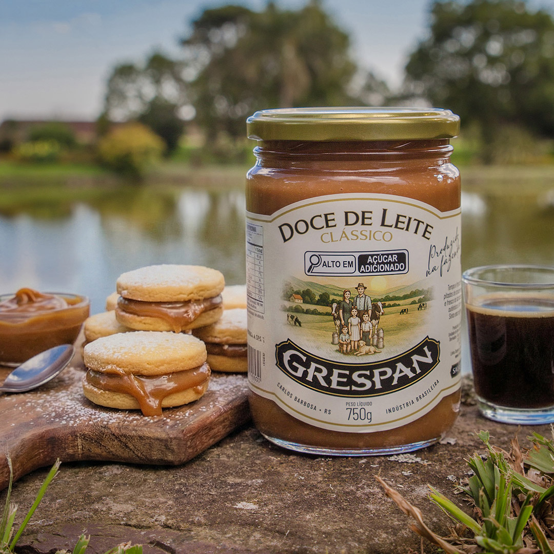 O Doce de Leite Clássico Grespan é feito artesanalmente, com cozimento lento, textura cremosa e sabor equilibrado.